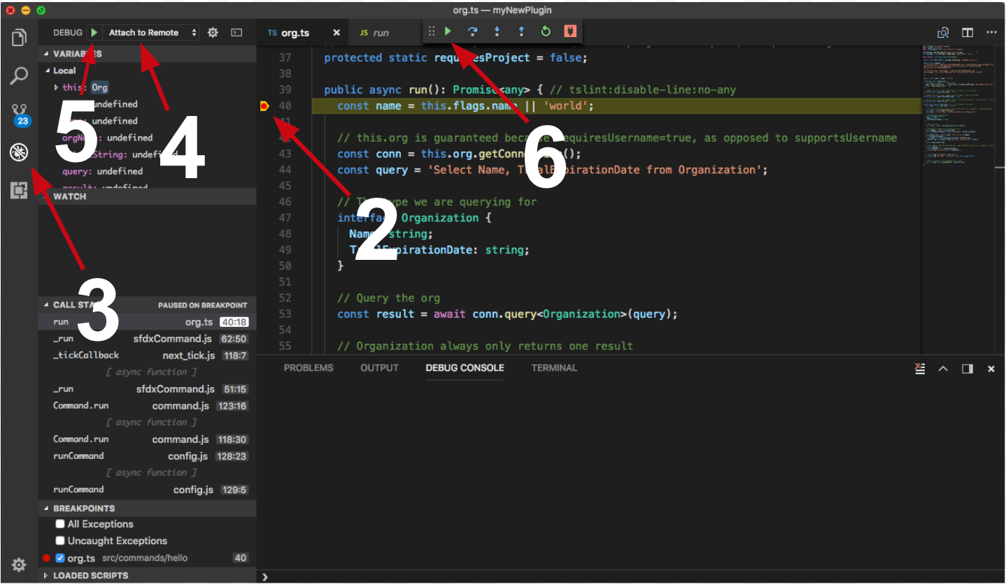 $ NODE_OPTIONS=--inspect-brk bin/run hello:org -u myOrg@example.com